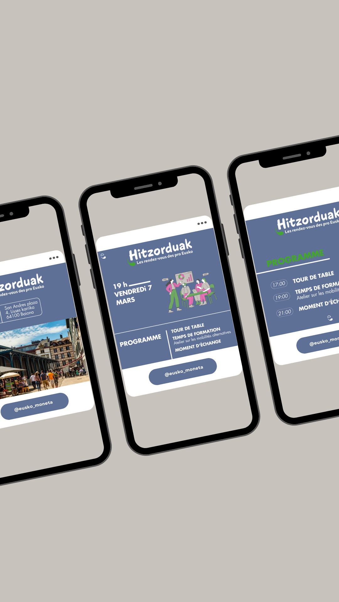 entre les membres du réseau Eusko, à travers plusieurs événements de 1h30 à 2h. Chaque rencontre comprendra un atelier d’information d’1 heure, animé par des formateurs de Bihar, suivi d’un moment
