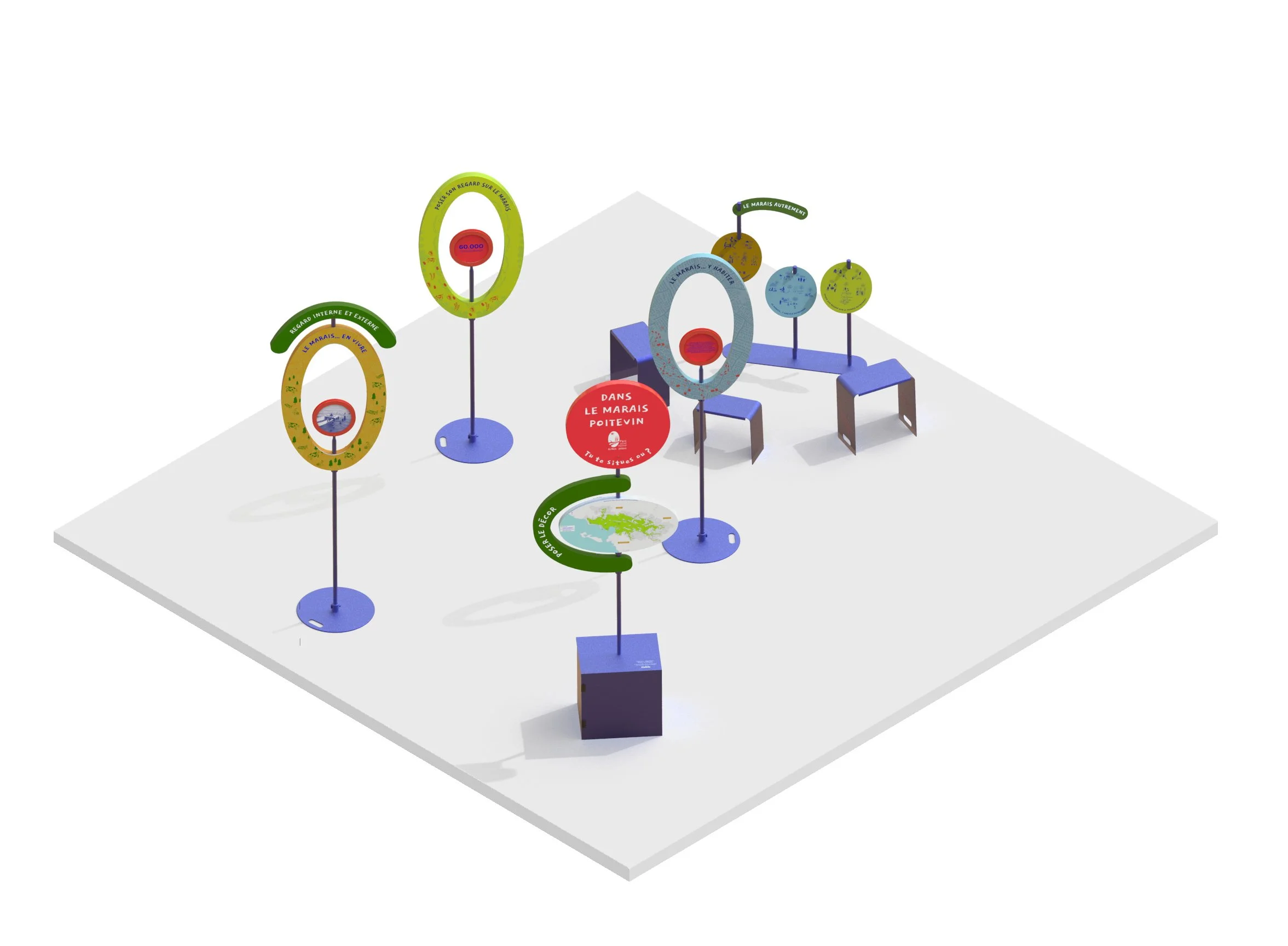 Nos objectifs étaient de mettre en avant la dualité et la diversité du territoire. Nous souhaitions intervenir auprès des usagers par un dispositif qui les aide à s’ancrer physiquement, corporellement et émotionnellement dans le territoire, car on ne saurait défendre une cause pour laquelle on ne se sent pas intimement concerné. Le tout répond à l’idée de développer un lien d’appartenance fort au territoire et ainsi susciter la prise de conscience sur les enjeux du Marais Poitevin.